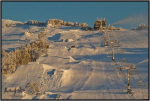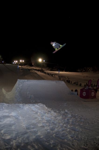 So saturday was the 2nd round of the Perisher Slopestyle Night Series. Because it was so popular last time, this time you had to do heats in the morning to get through to the night comp. As there were not many girls in my category, we all got through anyway which was lucky for me! So we just used the heats to get used to the new course and the new bigger money booter! Jed and Harley from our crew (BHK) got through too so I was stoked that we were all in the finals together again. No pics of me or the boys have surfaced yet, so here are just some pic of the course!